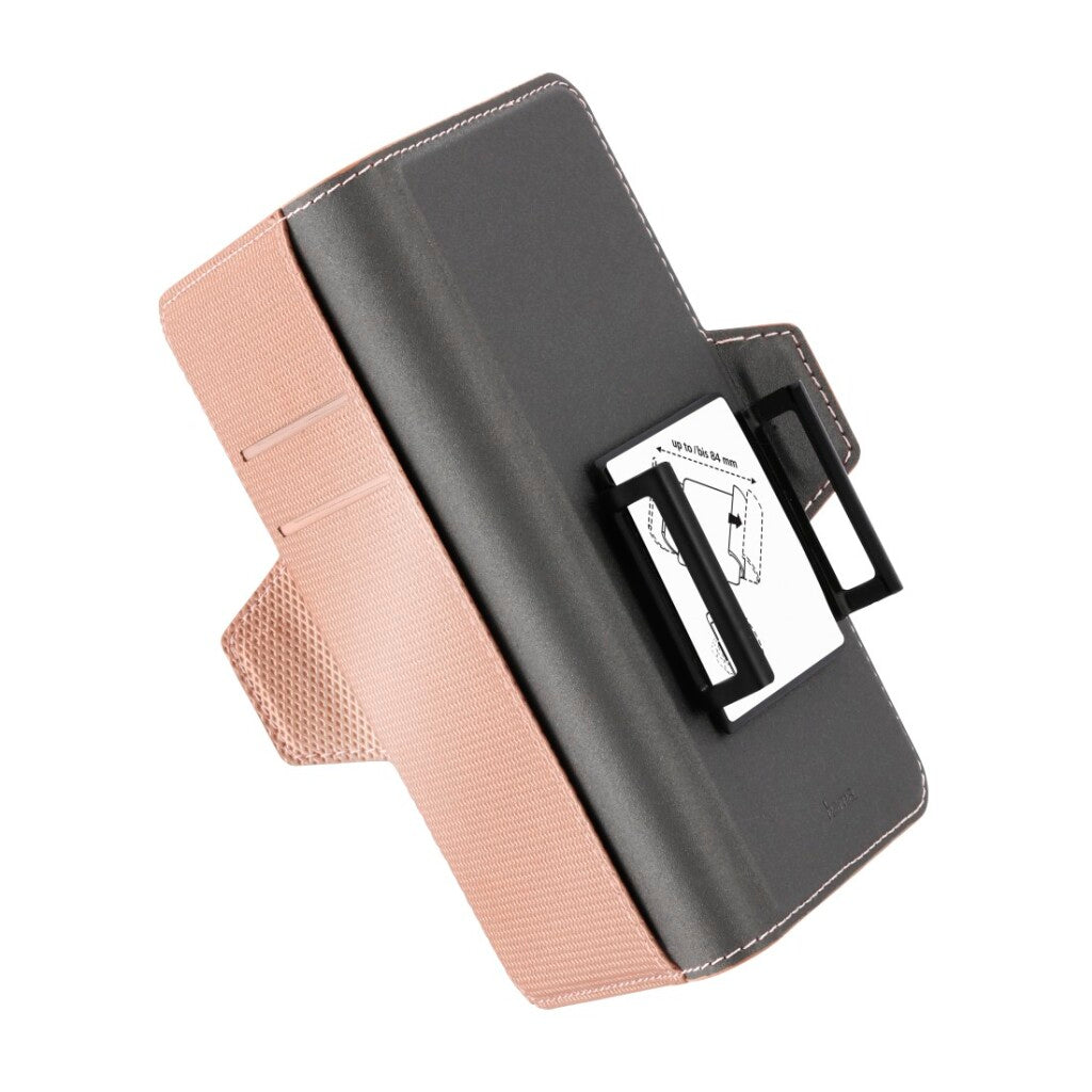 - Booklet met individueel verstelbare houder voor verschillende smartphones