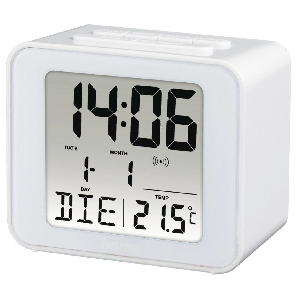 - Radiografische DCF-klok met digitale weergave van tijd, wektijd, datum en temperatuur