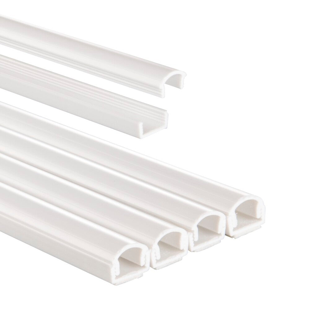 - Optisch aantrekkelijke, halfronde en lage kabelgeleiding (hoogte slechts 10 mm), bijv. voor onopvallende kabelgeleiding naar aan de muur gemonteerde flatscreen-tv's of aan het plafond gemonteerde beamers