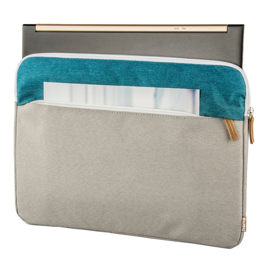 - Modieuze laptop-sleeve met een kleurenmix van petrol en grijs