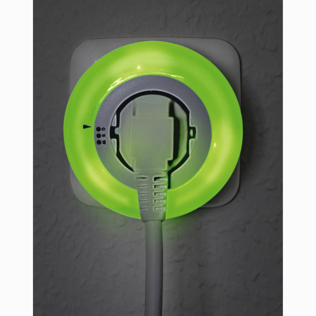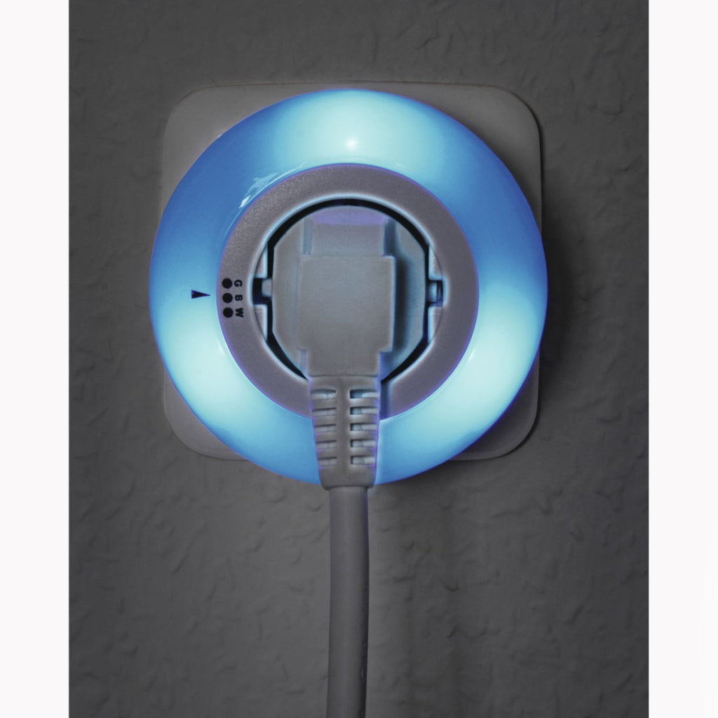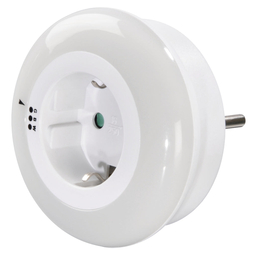 - Energiebesparende led-nacht- en oriëntatieverlichting (wit, groen, blauw) met schemersensor en geïntegreerd stopcontact met extra aanraakbeveiliging voor gebruik in kinderkamers, gangen, kelders, etc