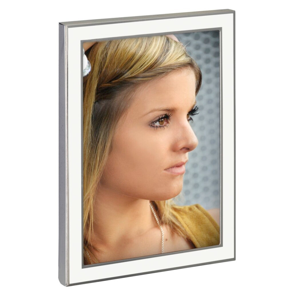 - Witte fotolijst met glanzende buiten- en binnenrand in zilver