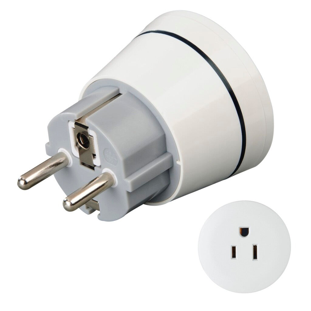 - Adapter voor apparaten uit de VS, Canada, Japan, Brazilië en andere apparaten met US-stekkers naar Europese 3-polige/geaarde stopcontacten