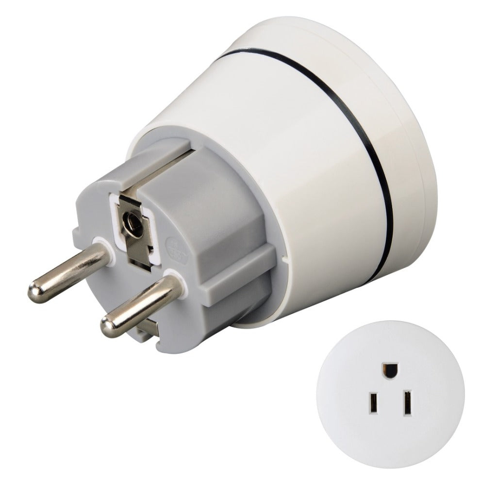 - Adapts from German sockets with earth contact to US plugs type A + B