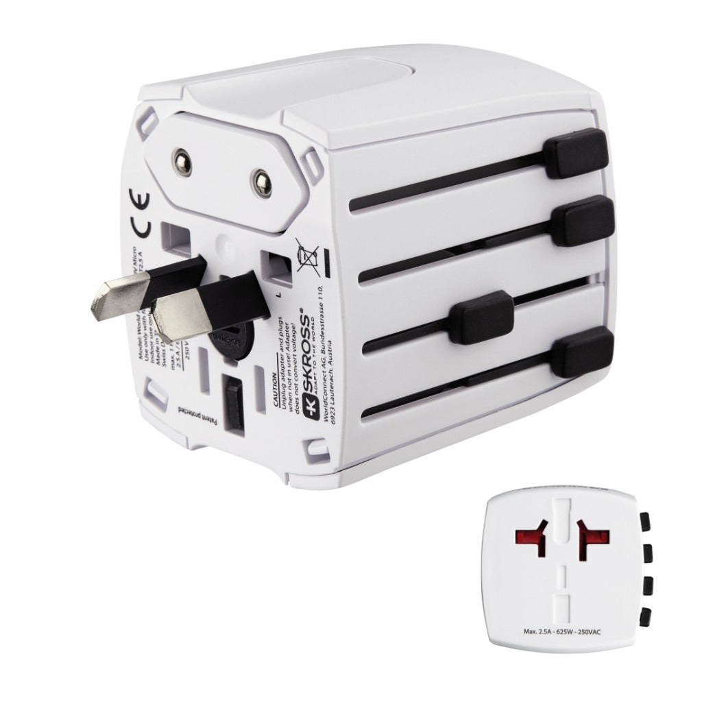- Adapts from US/UK/Chinese/Australian and European sockets to 2-pin US, Chinese, Australian and German hybrid and Euro plugs