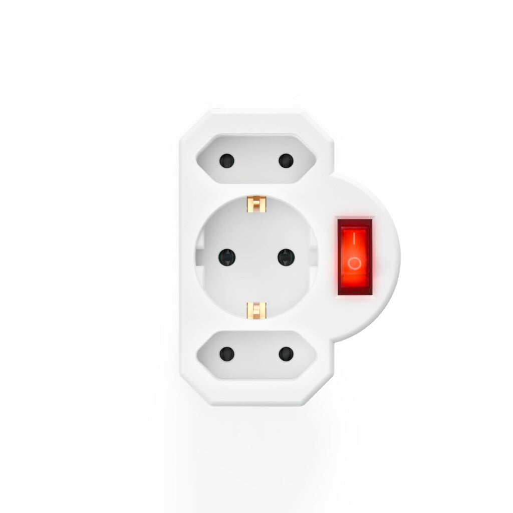 • Meervoudige contactdoos met schakelaar voor aansluiting van maximaal drie elektrische apparaten voor stroombesparend gebruik