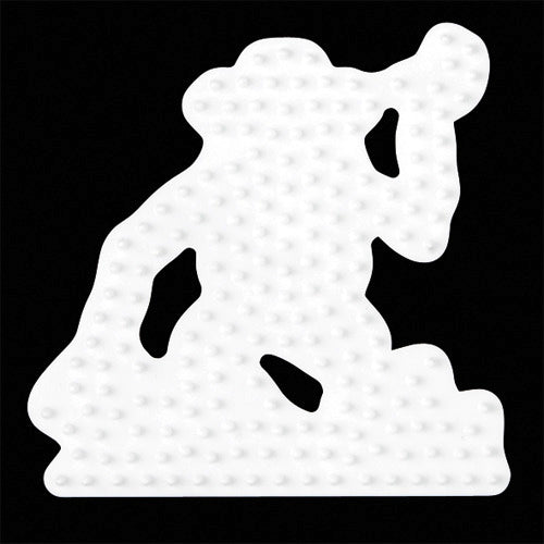 Strijkkralen kun je in bijna elk gewenst patroon leggen en dan door middel van strijkpapier en een strijkijzer samensmelten. Maar daarvoor heb je natuurlijk wel een grondplaat nodig. Witte grondplaat in de vorm van een aap.