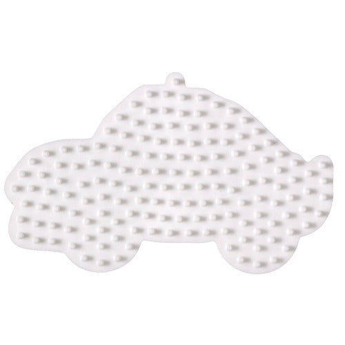Strijkkralen kun je in bijna elk gewenst patroon leggen en dan door middel van strijkpapier en een strijkijzer samensmelten. Maar daarvoor heb je natuurlijk wel een grondplaat nodig. Witte grondplaat in de vorm van een auto.