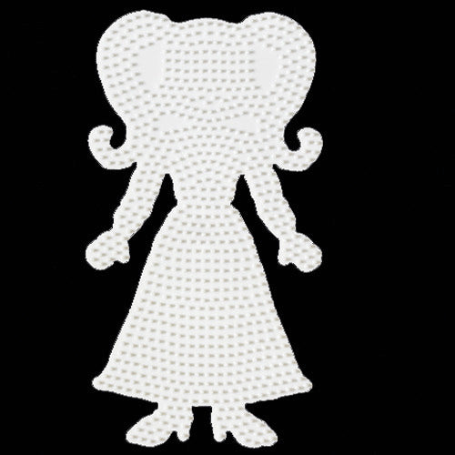 Strijkkralen kun je in bijna elk gewenst patroon leggen en dan door middel van strijkpapier en een strijkijzer samensmelten. Maar daarvoor heb je natuurlijk wel een grondplaat nodig. Grondplaat in de vorm van een meisje.