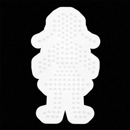 Strijkkralen kun je in bijna elk gewenst patroon leggen en dan door middel van strijkpapier en een strijkijzer samensmelten. Maar daarvoor heb je natuurlijk wel een grondplaat nodig. Witte grondplaat in de vorm van een meisje.