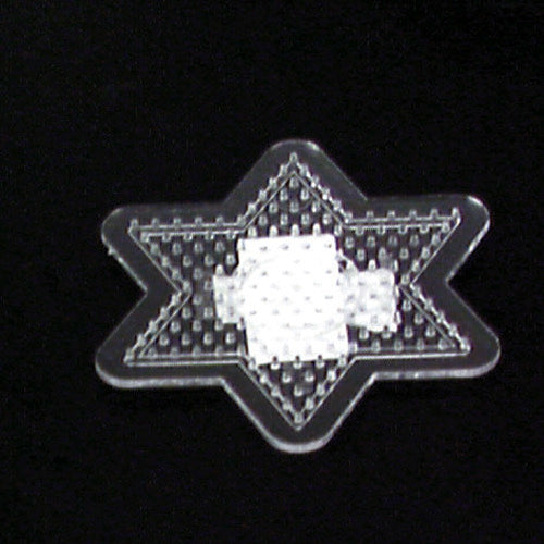 Strijkkralen kun je in bijna elk gewenst patroon leggen en dan door middel van strijkpapier en een strijkijzer samensmelten. Maar daarvoor heb je natuurlijk wel een grondplaat nodig. Transparante, kleine, grondplaat in de vorm van een ster.