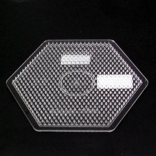 Strijkkralen kun je in bijna elk gewenst patroon leggen en dan door middel van strijkpapier en een strijkijzer samensmelten. Maar daarvoor heb je natuurlijk wel een grondplaat nodig. Transparante, grote, zeshoekige grondplaat.