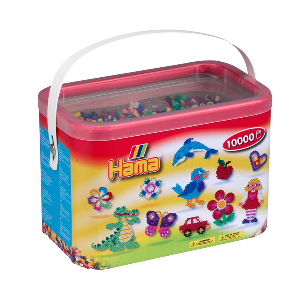 Hama strijkkralenemmer met 10.000 strijkkralen in 23 verschillende kleuren. Kleurnummers: 01 t/m 12, 17, 18, 20, 21, 26 t/m 31.