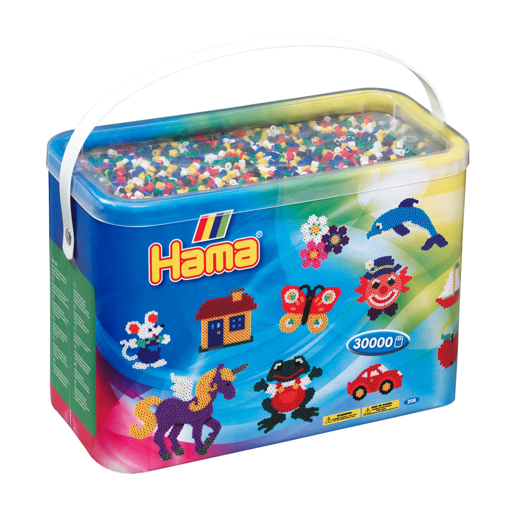 Hama strijkkralenemmer met 30.000 strijkkralen in 6 verschillende kleuren. Kleurnummers: 01, 03, 05, 08, 10, 18.