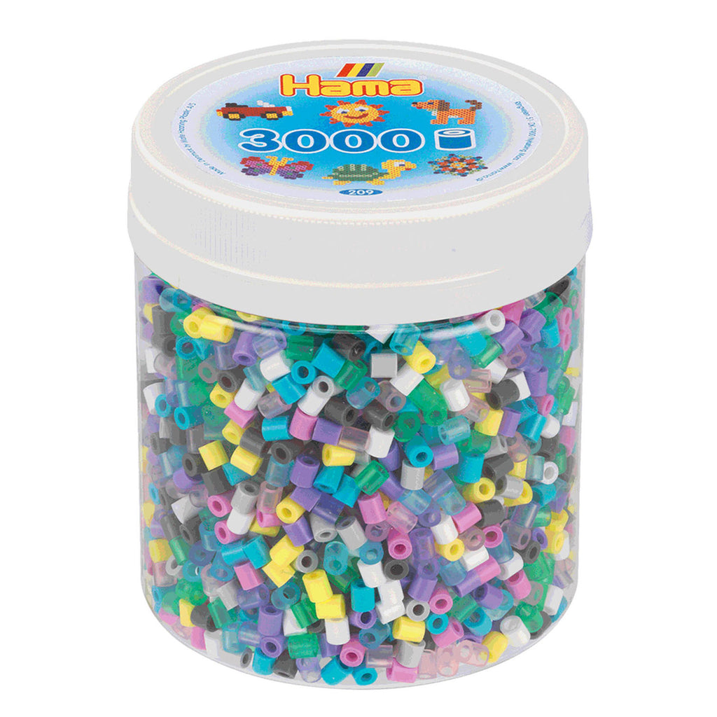 Creëer vele kleurrijke kunstwerkjes met de Hama Strijkkralen in Potje - Kleurenmix. De transparante pot met draaidop is gevuld met 3000 gekleurde strijkkralen.