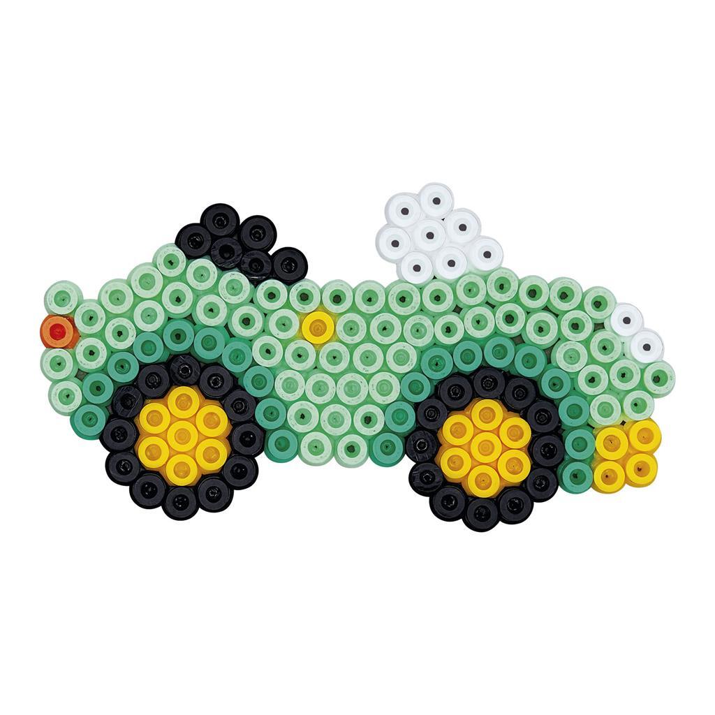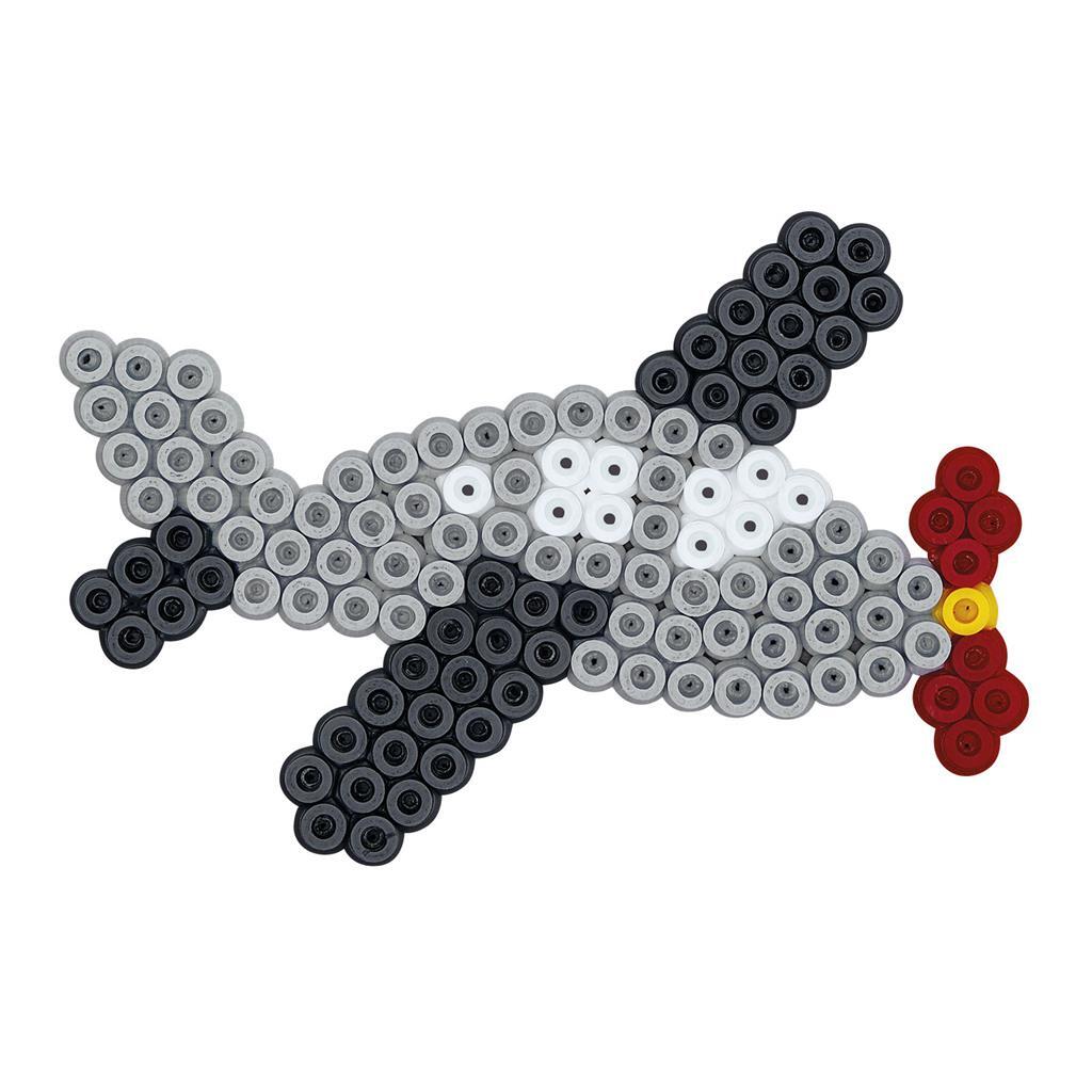 Hama strijkkralenset met 4000 kralen, 3 strijkkralenbordjes (auto, zeilschip en vliegtuig) en strijkpapier.