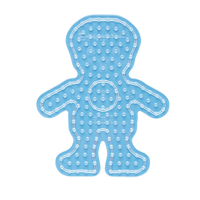 Hama Maxi strijkkralenbordje in de vorm van een jongen. Het bordje is transparant van kleur.