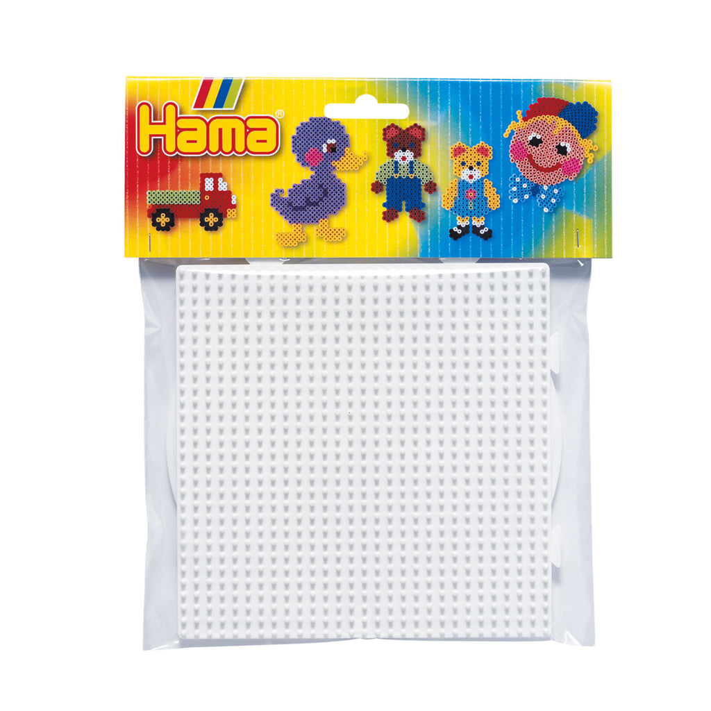 Set van 2 grote Hama strijkkralenbordjes in de vorm van een vierkant en een cirkel.