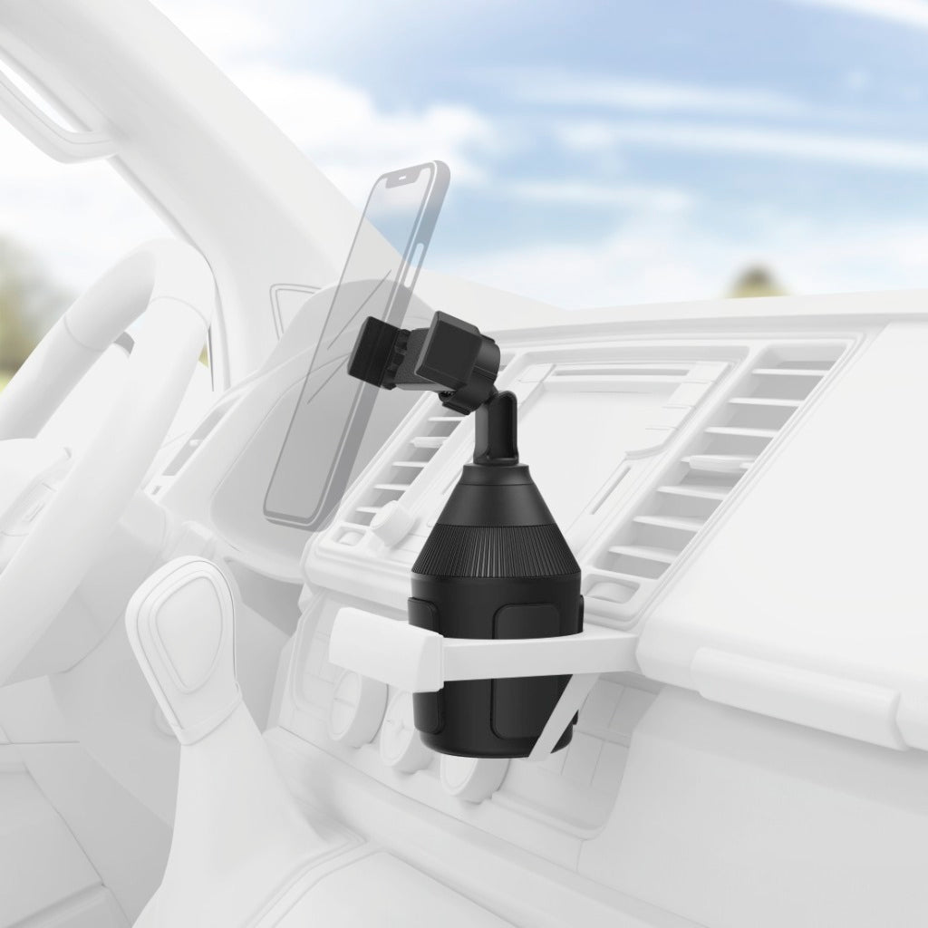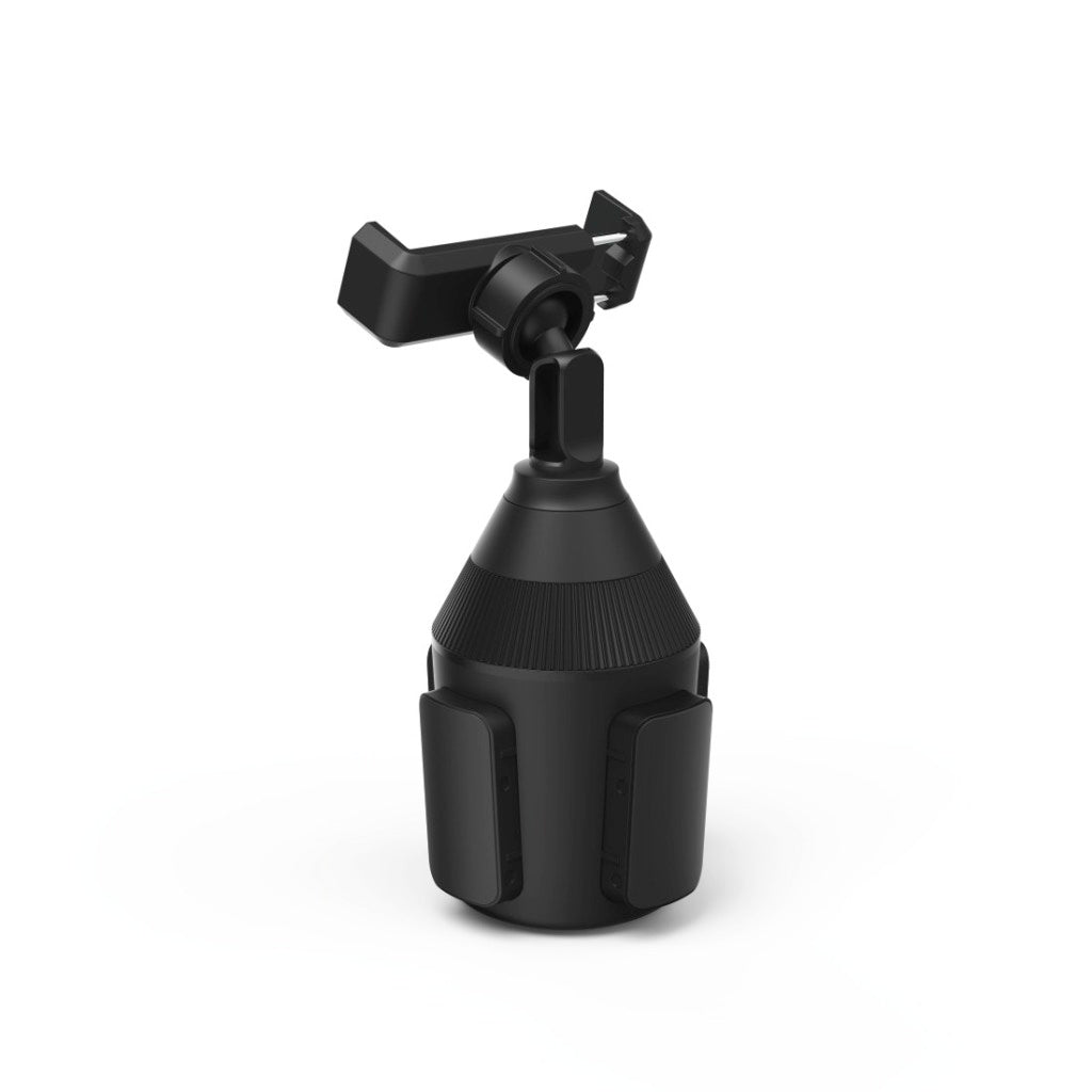 - Houder voor stevige bevestiging van een smartphone aan de bekerhouder van een voertuig