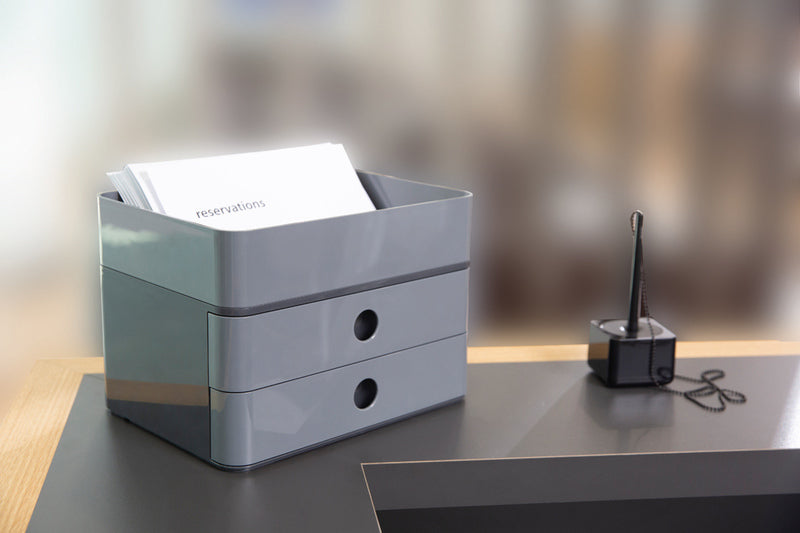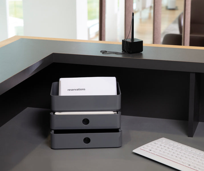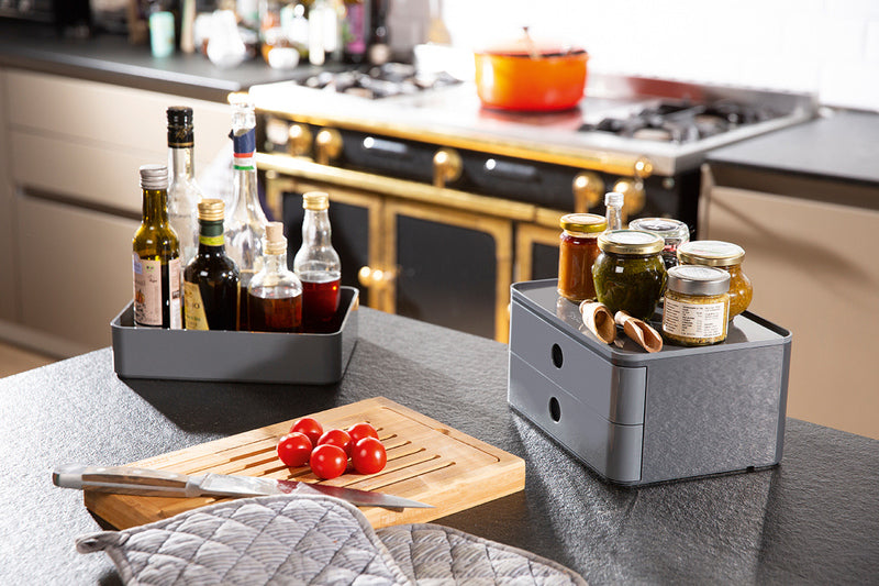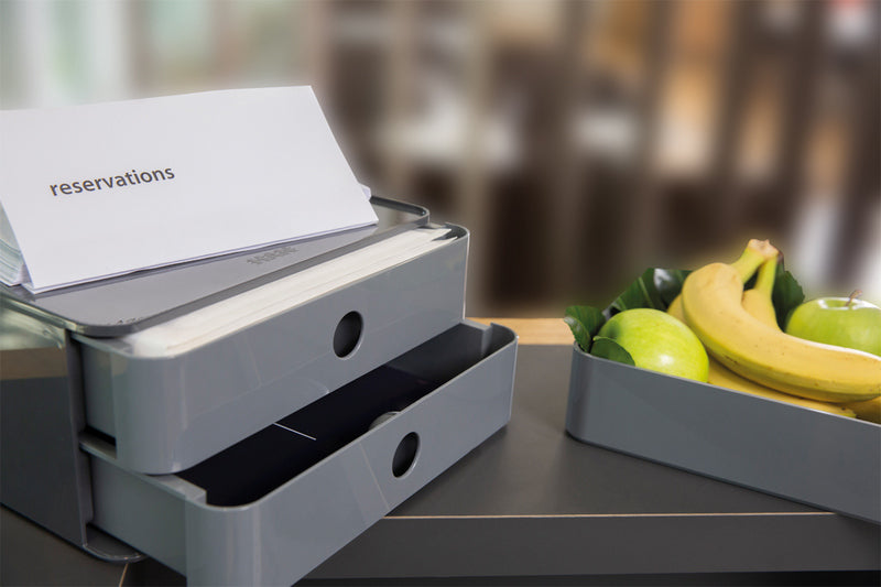 Allison: het opruimsysteem! Kompleet moduleerbaar, individueel combineerbaar, willekeurig stapelbaar, soepellopende schuiflades, uitneembare tussenwanden, verschuifbare- en uitneembare inzetdelen, geintergreerde kabelgeleider, tray te gebruiken als dienblad, gumdopjes om ondergrond te beschermen. Gemaakt van hoogwaardig kunststof. Gemaakt in Duitsland. Overal te gebruiken: op bureau, bij koffiepunt, bij de receptie, in de badkamer, in de hobbyruimte, in de kinderkamer, in de keuken en nog veel meer. Verkrijgbaar in 10 trendy kleuren en kleurcombinaties.