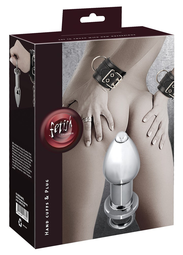 Handboeien plus anaalplug van fetish collection, verbonden door ketting en 3 sloten. De handboeien in stijlvolle lederlook zijn verstelbaar voor HEM en HAAR door middel van gespsluitingen. De roestvrijstalen plug kan ook worden verwarmd (in een waterbad) of gekoeld (in de koelkast) voor warm/koud spel.