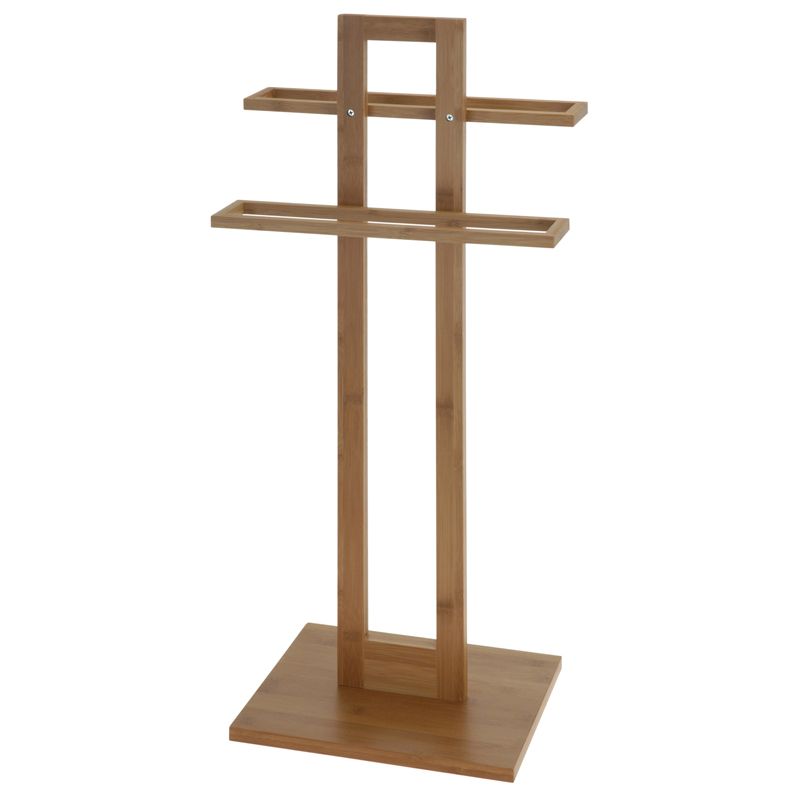 Dit handdoekenrek is gemaakt van bamboe en is daardoor duurzaam en heeft een warme uitstraling.