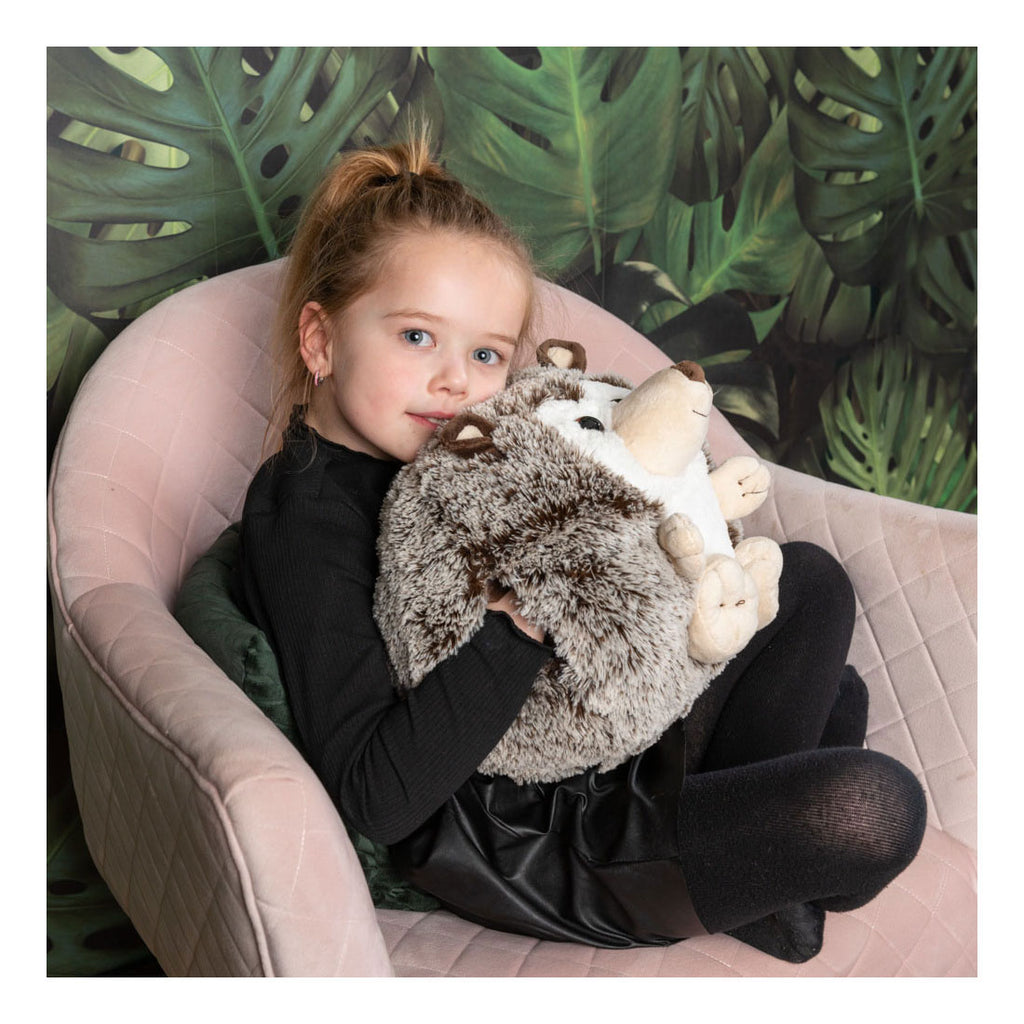 Kussen, Handwarmer en Knuffel in 1! Ideaal om je hoofd op te laten rusten, je handen op te warmen, te reizen of gewoon om mee te spelen. Elke knuffel heeft 2 openingen aan de zijkanten zodat je je handen erin kunt opwarmen. Door gebruik te maken van de zijgaten voelen kinderen zich veilig.