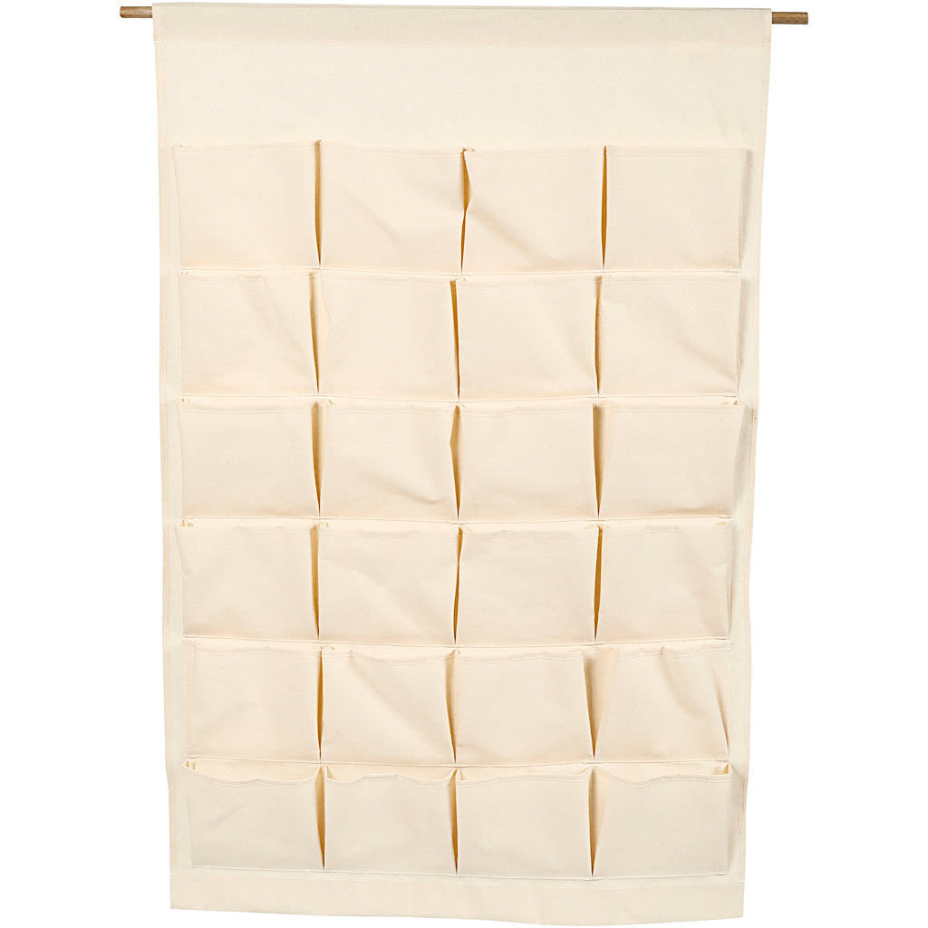 Hangende organiser van dik canvas, naturel, H: 93 cm, B: 60 cm, 1 stuk.