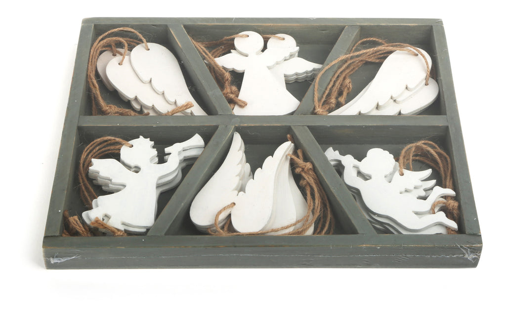 It's Christmas time! Deze prachtige houten hangdecoratie hoort tijdens de advent in elk huis thuis. Er zijn zes verschillende hangende decoraties om uit te kiezen. In deze decoratieset zit voor ieder wat wils. Of het nu gaat om vleugels, engelen of harten met een sjerp, deze hangende houten decoraties zijn echt rustiek en kunnen heel goed als set worden gecombineerd.