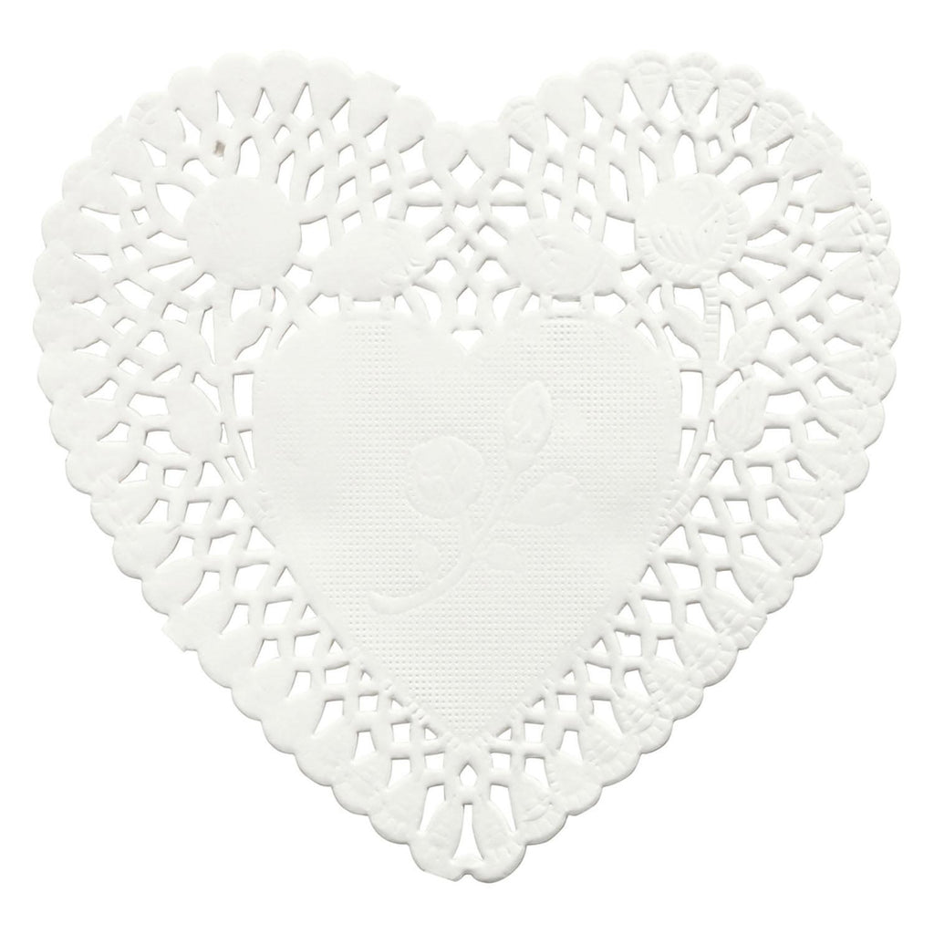 Hartvormige cakeservetten/onderleggers met fijn kant motief. Inhoud 30 stuks.
