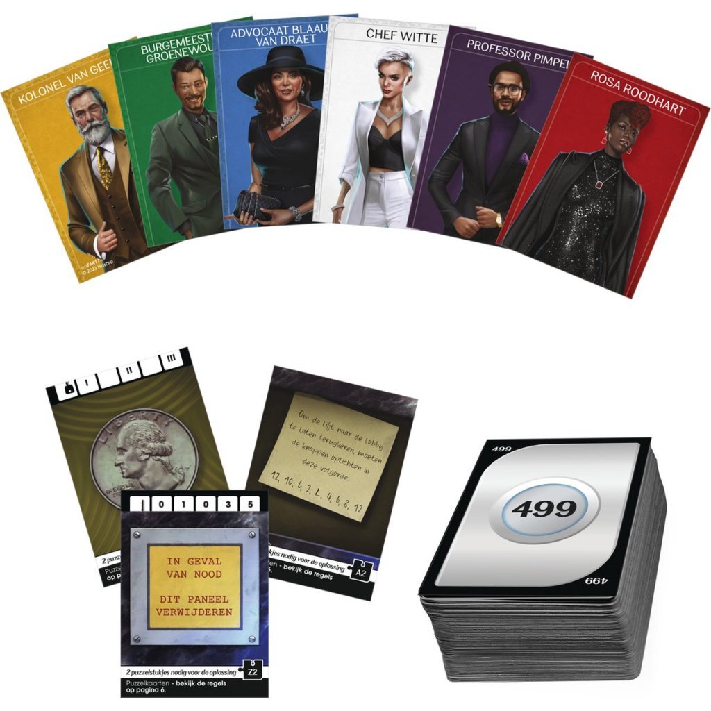 Na de moord op Swart in Slot Swaenesteyn, ben je met de andere gasten van die nacht uitgenodigd voor zijn uitvaart in Het Midnight Hotel. Daar ontdek je dat het chantagemateriaal dat hij over jullie verzamelde, er nog steeds is - en een van jullie heeft zojuist geprobeerd het te stelen! De spelers moeten nu uitzoeken WIE probeerde het chantagemateriaal te deleten, WAAR het is opgeslagen en WAT het wachtwoord is om de bestanden te openen. Het spel Cluedo Escape: Het Midnight Hotel plaatst de klassieke Cluedo-personages en het verhaal in een escape room-spel dat je snel kunt spelen met een beperkte voorbereiding. Spelers verplaatsen hun pion over een 3D-bord dat kamer voor kamer wordt uitgebreid, terwijl ze kaarten trekken, puzzels oplossen, nieuwe kamers ontgrendelen en aanwijzingen ontdekken. Na de ontsnapping uit het hotel bekijken ze de aanwijzingen die ze hebben verzameld en moeten ze met logisch nadenken de juiste beschuldiging uitspreken om te winnen! Verzamel vrienden en familie voor een meeslepende, eenmalige ervaring die ze niet snel zullen vergeten. Ook een geweldig cadeau voor fans van het originele Cluedo-spel en andere detectivespellen. Voor 1-6 spelers, leeftijd 10+. Hasbro Gaming en alle gerelateerde handelsmerken en logo's zijn handelsmerken van Hasbro, Inc.