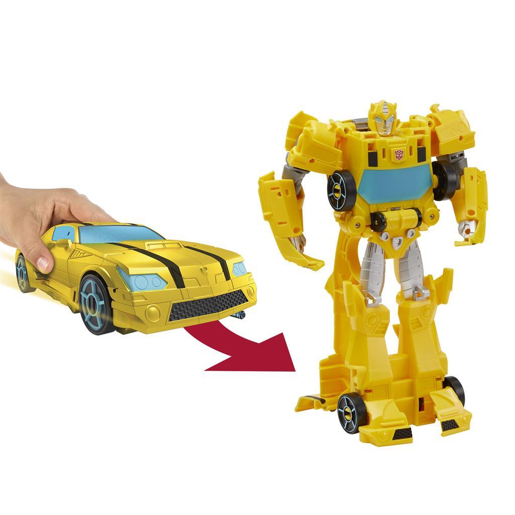 Haal de magie van de Transformet Robots in huis met deze Transformers Cyberverse Roll and Transform. Met dit 2in1 Bumblebee figuur verander je naadloos van racewagen naar robot. Rol de racewagen naar voren en kijk hoe Bumblebee in één continue beweging verandert in robotmodus! Druk op de knop en de transformer geeft licht en heeft 10 verschillende geluidseffecten. Inclusief batterijen.