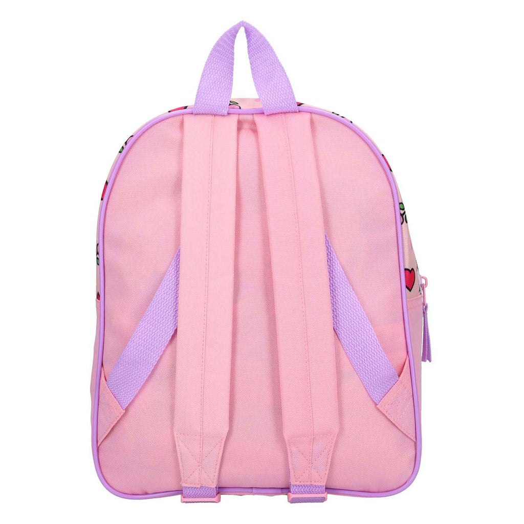 Deze rugzak uit de 'Sweet Charm' collectie is ideaal voor alle Hello Kitty fans! De rugzak is roze van kleur met een grote print van Hello Kitty op de voorkant. Het hoofd en voorvak bieden voldoende ruimte en sluiten met een rits. De tas is afgewerkt met paarse details. Verder heeft de rugzak verstelbare schouderbanden zodat de tas voor iedereen op maat te maken is. Aan de bovenkant van de rugzak is een handige lus zodat de tas ook aan de hand te dragen is.