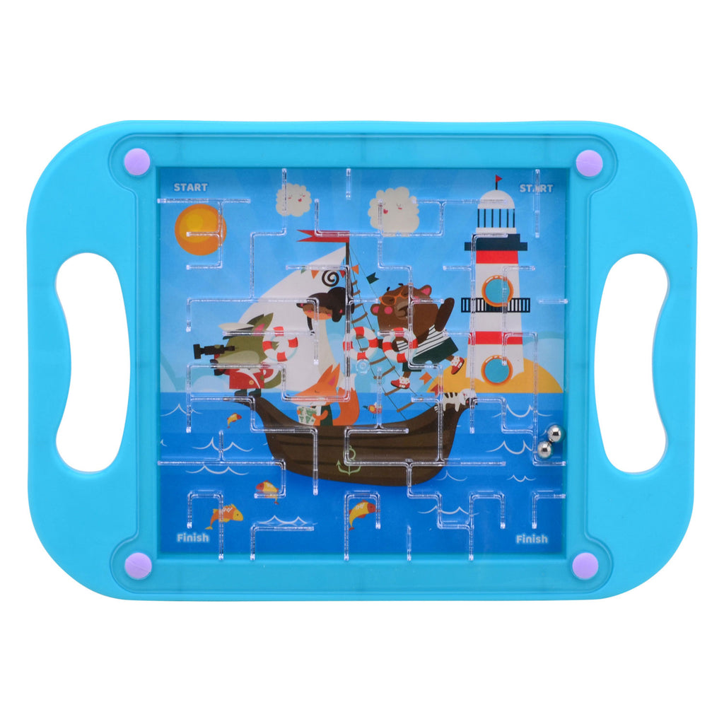 Doolhof waarbij je via beweging de balletjes bij de finish moet brengen. Afmetingen: 20 x 15 cm groot. Geschikt vanaf 3 jaar.