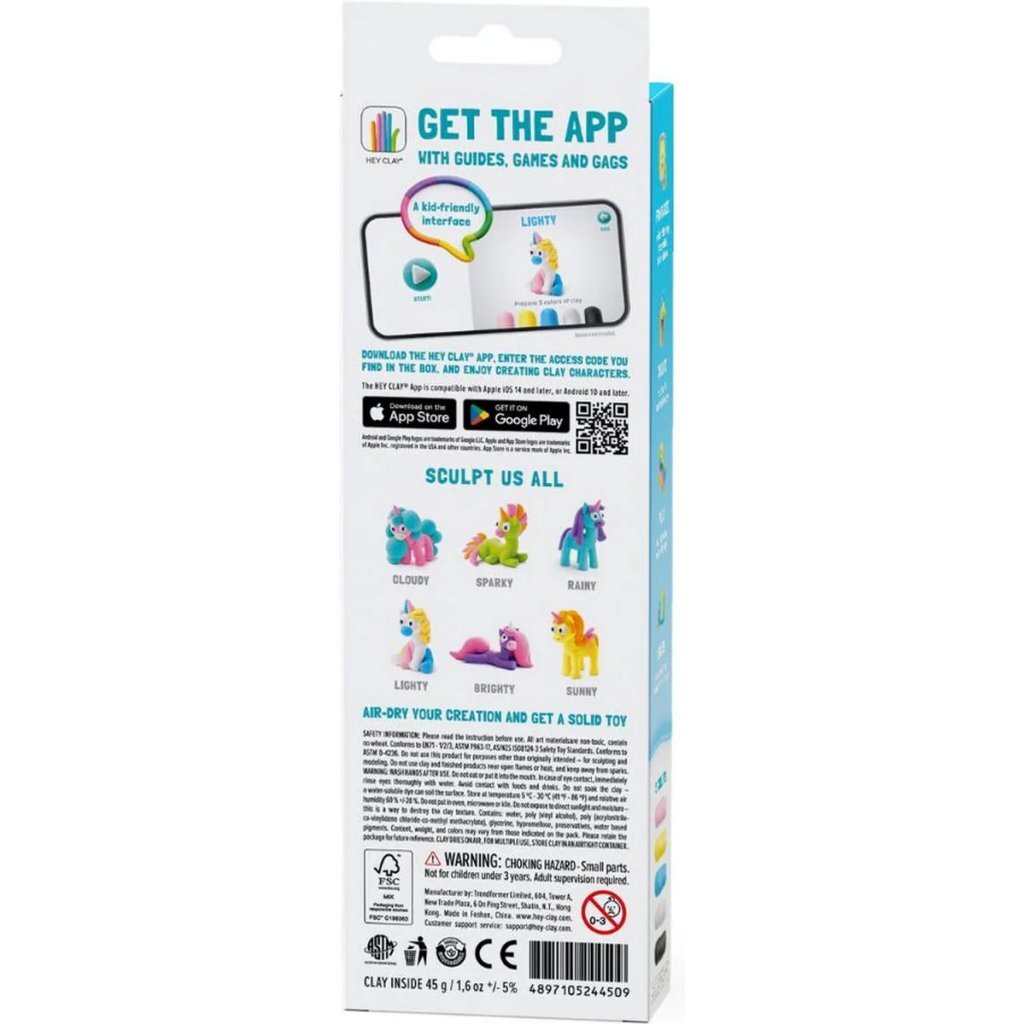 Deze set biedt kinderen alles wat ze nodig hebben om hun eigen betoverende eenhoorn te boetseren en hun creatieve vaardigheden te ontwikkelen. Met 3 potjes klei.
