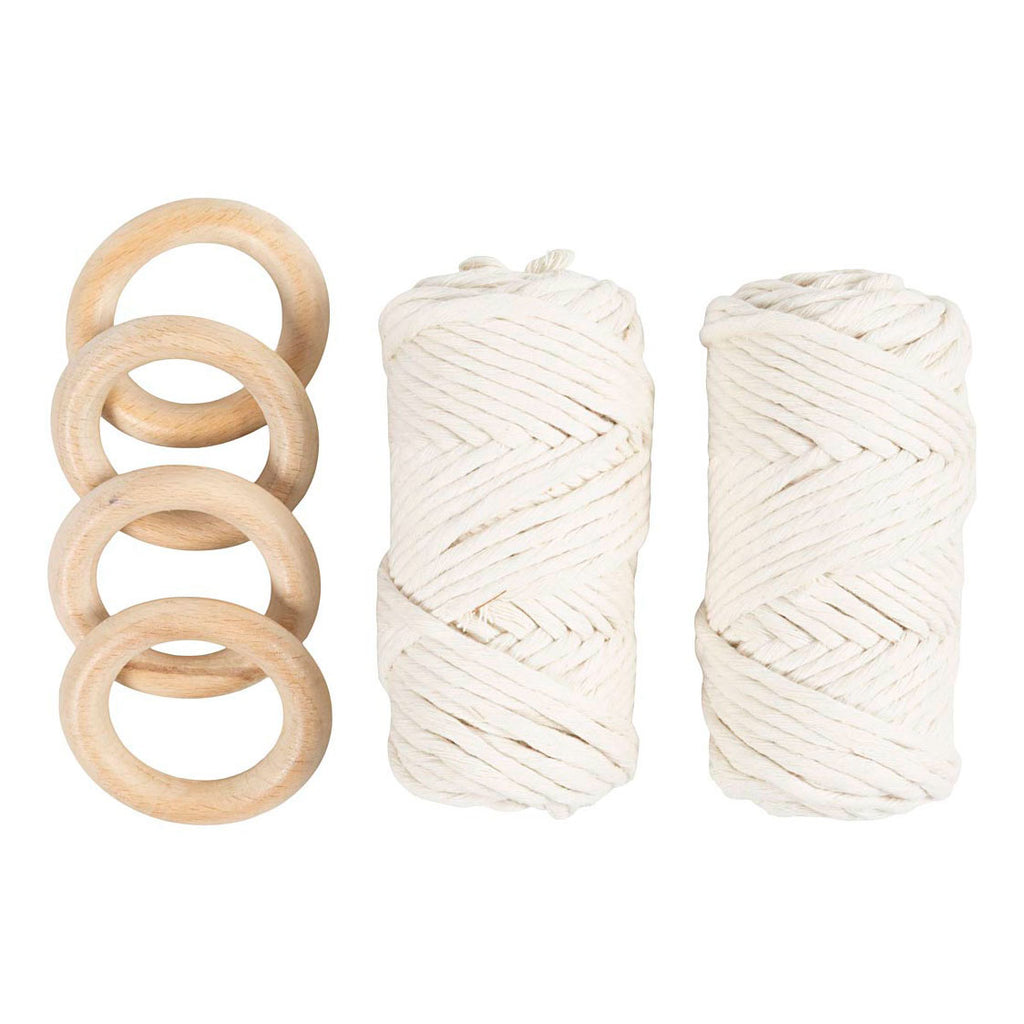 Met deze set kunt u vier servetringen en vier onderzetters maken voor uw creatieve tafeldecoratie. De set bevat alle materialen en instructies die u nodig hebt.Wilt u uw tafeldecoratie een persoonlijk tintje geven? Dan is deze set echt iets voor u. Gebruik de macramé knooptechniek om schitterende servetringen en onderzetters te maken. U gebruikt drie verschillende macraméknopen die u supermakkelijk leert. Als u al ervaring hebt met macramé, kunt u in een mum van tijd aan de slag.Inhoud: Macramékoord, houten ring