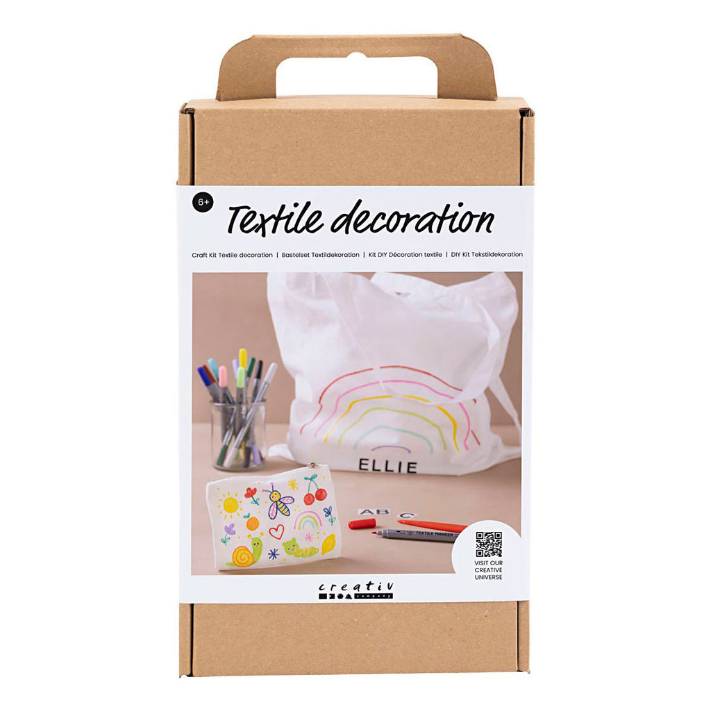Met deze set kunt u textiel versieren. Bevat alle materialen en instructies die u nodig hebt.Wilt u persoonlijke en kleurrijke stoffen maken, dan is deze set echt iets voor u. De set bevat alles wat u nodig hebt om aan de slag te gaan. Met behulp van rub-on stickers en textielstiften kunt u uw eigen draagtas en etui versieren en als u deze daarna strijkt wordt de opdruk stabiel en kunt u uw items met de hans wassen. Vind advies en inspiratie op de achterkant van de doos of scan de QR-code om alles online te vinden.Inhoud: Tas, portemonnee, textiel marker, rub-on stickers