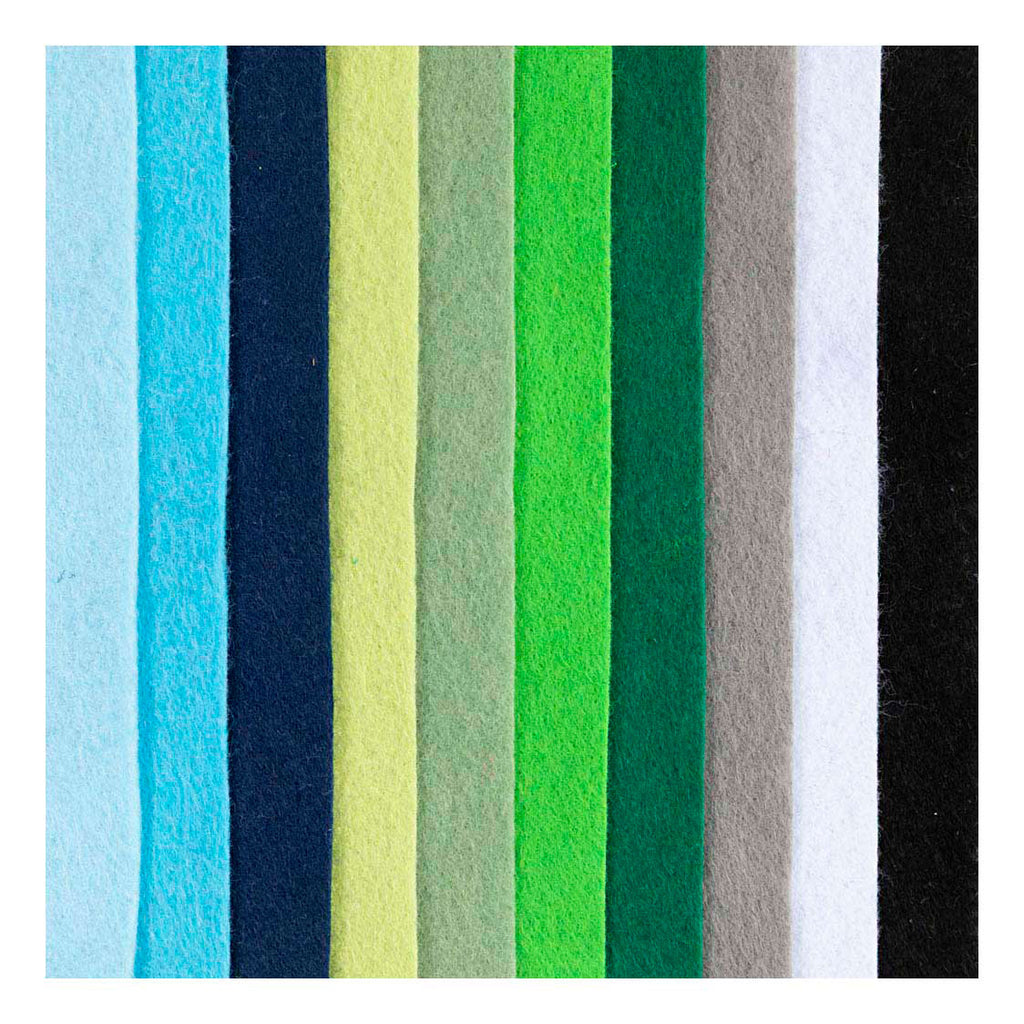 Vellen zacht vilt in blauw en groene kleuren, gemaakt van 100% polyester in A4 formaat. Geschikt voor je creatieve knip- en naaiprojecten, zoals kerstdecoraties, voorjaarsdecoraties, teddyberen enz.
