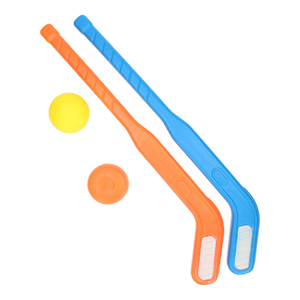 Speel een spelletje hockey op straat met deze robuuste hockeyset. De sticks en de grote pucks zijn gemaakt van stevig kunststof in felle kleuren. Dankzij het robuuste materialen is de set geschikt om op straat mee te spelen.