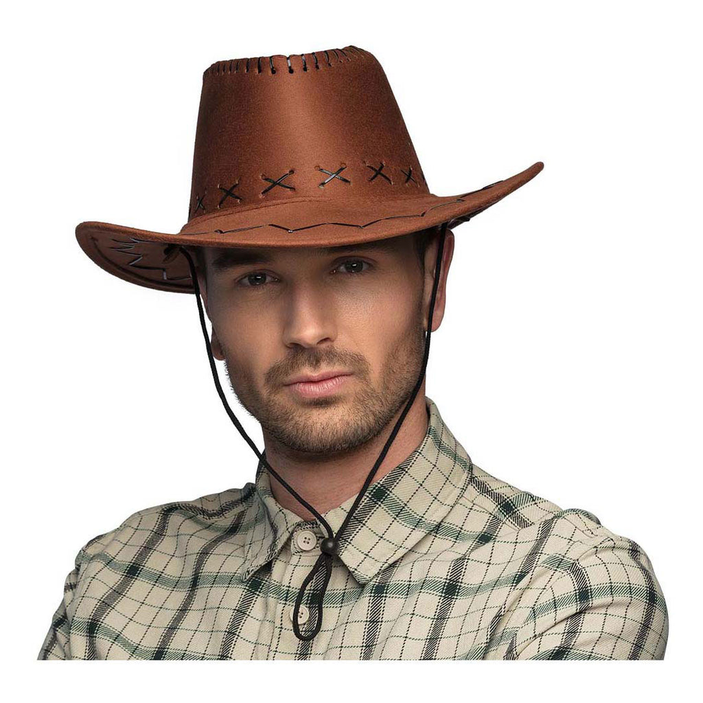 De Boland Hoed Elroy is een bruine cowboyhoed in leatherlook, geschikt voor volwassenen vanaf 14 jaar. Met een hoofdomtrek van 59 cm en een comfortabele pasvorm is deze hoed ideaal voor themafeesten, carnaval of verkleedpartijen. Een stijlvolle toevoeging aan elke westernoutfit.