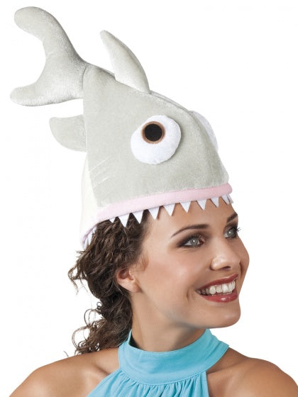 Zet deze grappige hoed op en het lijkt net alsof een haai jouw hoofd op eet. Leuk voor verkleedfeestjes. De hoed heeft aan de binnenkant een elastiek met klittenband, zo kun je de hoed wat strakker op je hoofd zetten. De ovale binnenkant heeft een afmeting van ongeveer 25cm lang en 15cm breed. De muts is ongeveer 30cm hoog.