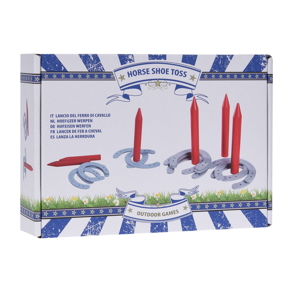 Scoor jij de meeste punten met het Hoefijzer spel van hout? Gooi de hoefijzers om de bijgeleverde rode stokken. De speler die de meeste hoefijzers om de stokken heen werpt heeft gewonnen! De set bestaat uit 3 stokken en 6 hoefijzers.