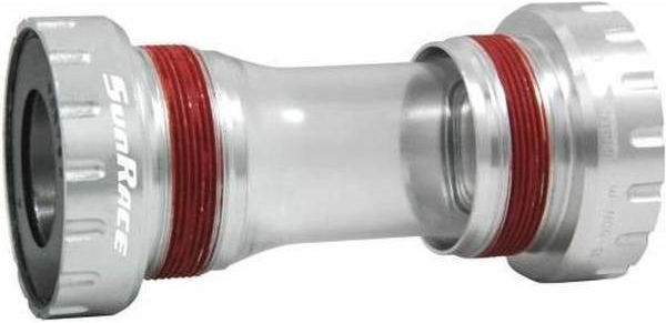 Geïntegreerde BB voor Sunrace FCRS (S1) Aluminium en helder composiet Verzegelde lagers Draad cups: BC 1.37 x 24T Diameter cups: 68mm Kleur: zilver geanodiseerd Gewicht: 125 gram