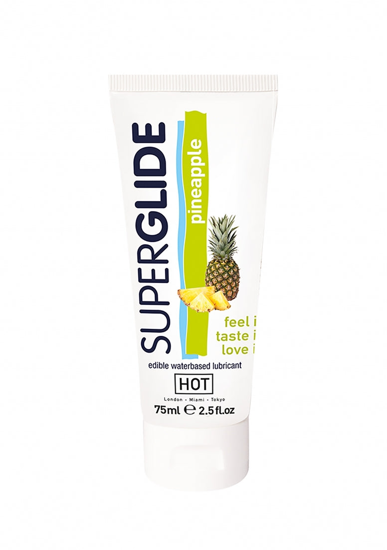 HOT SUPERGLIDE EDIBLE 100 % eetbare glijgel! Eetbare smeergel op waterbasis die er is in een keuze uit 5 verrukkelijke smaken. De ingrediënten worden ook in voedsel gebruikt en zijn dus geschikt voor consumptie. De frisse en fruitige smaak op de lippen en tong maakt orale seks voor beide partners nog aangenamer en interessanter.
