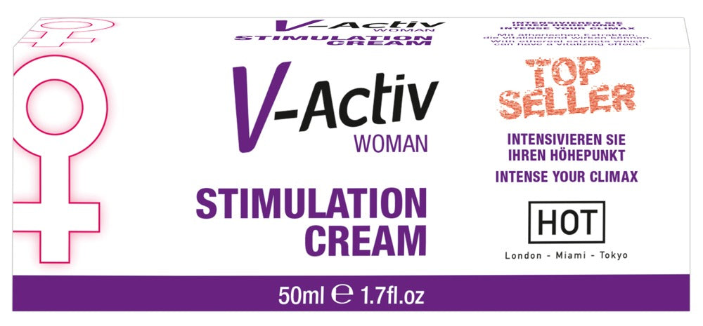 HOT V-ACTIV STIMULATIE CREAM voor Vrouwen V-ACTIV Stimulatiecrème voor vrouwen met geselecteerde essentiële oliën kan een stimulerend effect hebben op zowel lichaam als geest. De zachtheid helpt bij de opbouw naar een intens hoogtepunt! Ervaar pure extase. Kan het gevoel van genot verhogen en kan vitaliseren. Je kunt de verbazingwekkende effecten uittesten op een stukje zachte huid!