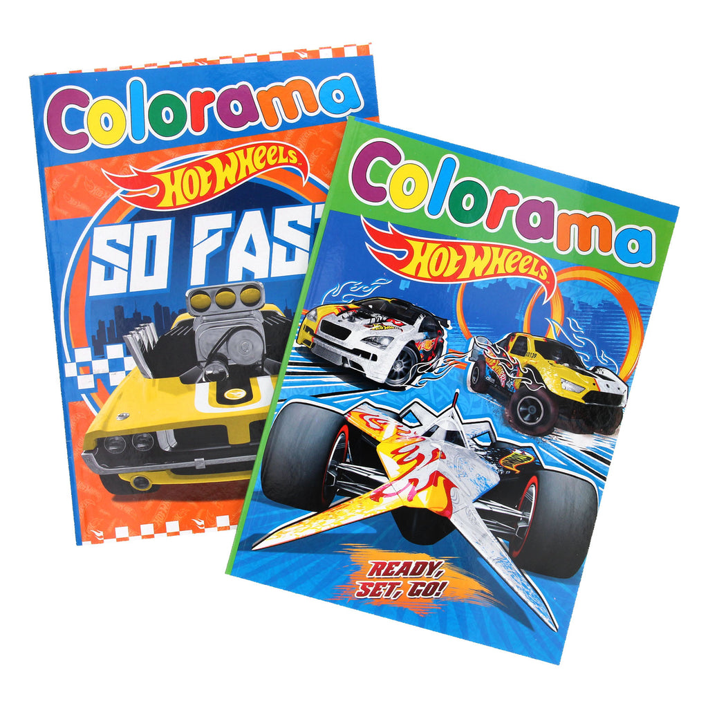 Dit Hot Wheels Colorama kleurboek staat vol snelle racewagens en motors. Op de toffe kleurplaten zie je de Hot Wheels in actie! Pak je kleurgerei erbij en geef ze allemaal maar een mooie flitsende kleur.