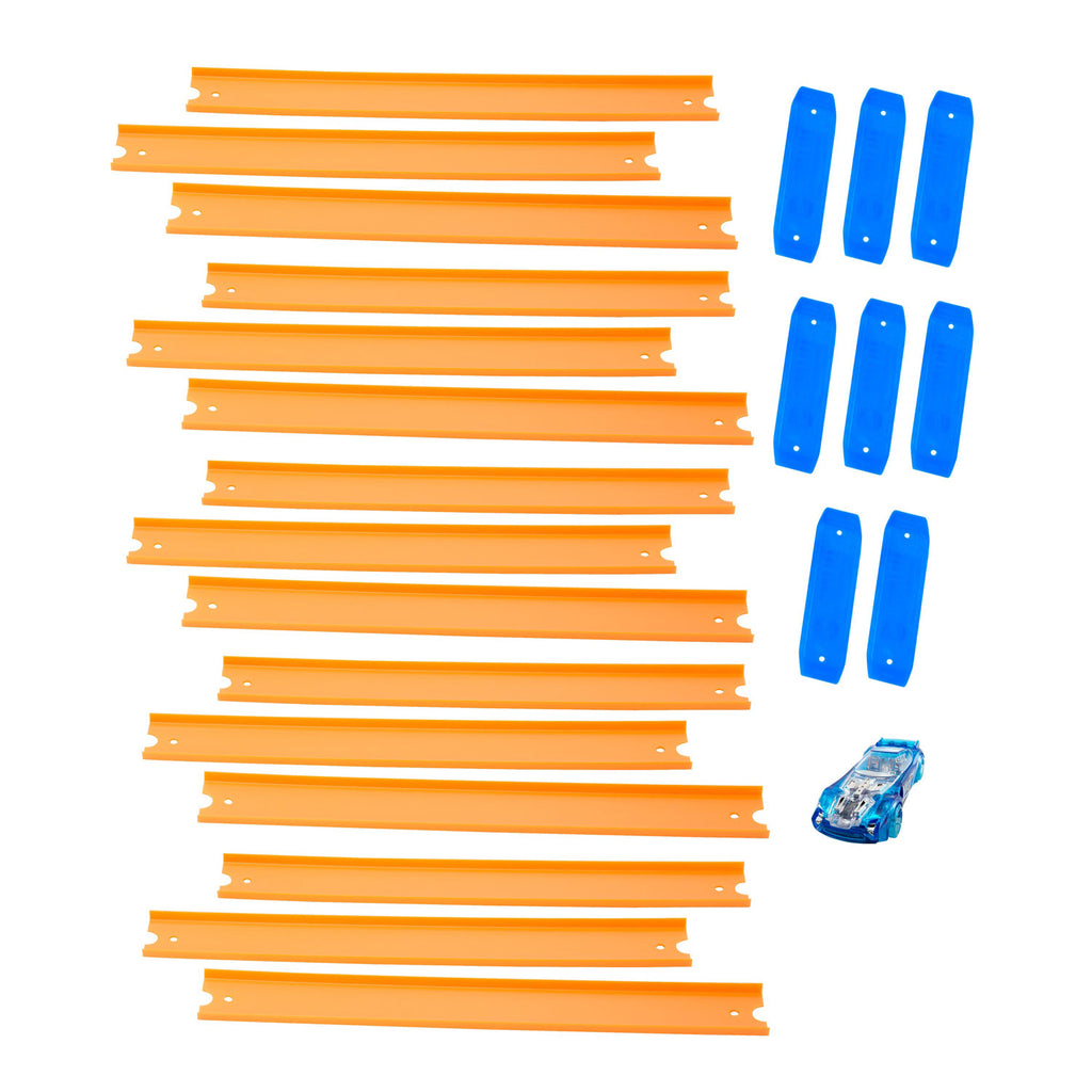 Met een waanzinnige 4,5 meter aan baandelen. Een Hot Wheels auto is inbegrepen dus je kunt meteen van start. Bevat 12 baandelen van 22,5 cm, 6 baandelen van 30 cm en 18 verbindingstukken. Laat je Hot Wheels auto over de baan knallen en haal hoge snelheden op he trechte stuk! Verbind met andere Hot Wheels baandelen voor super veel stuntpret! Verkrijgbaar in verschillende uitvoeringen.U kunt niet kiezen, maar ontvangt een willekeurige uitvoering.