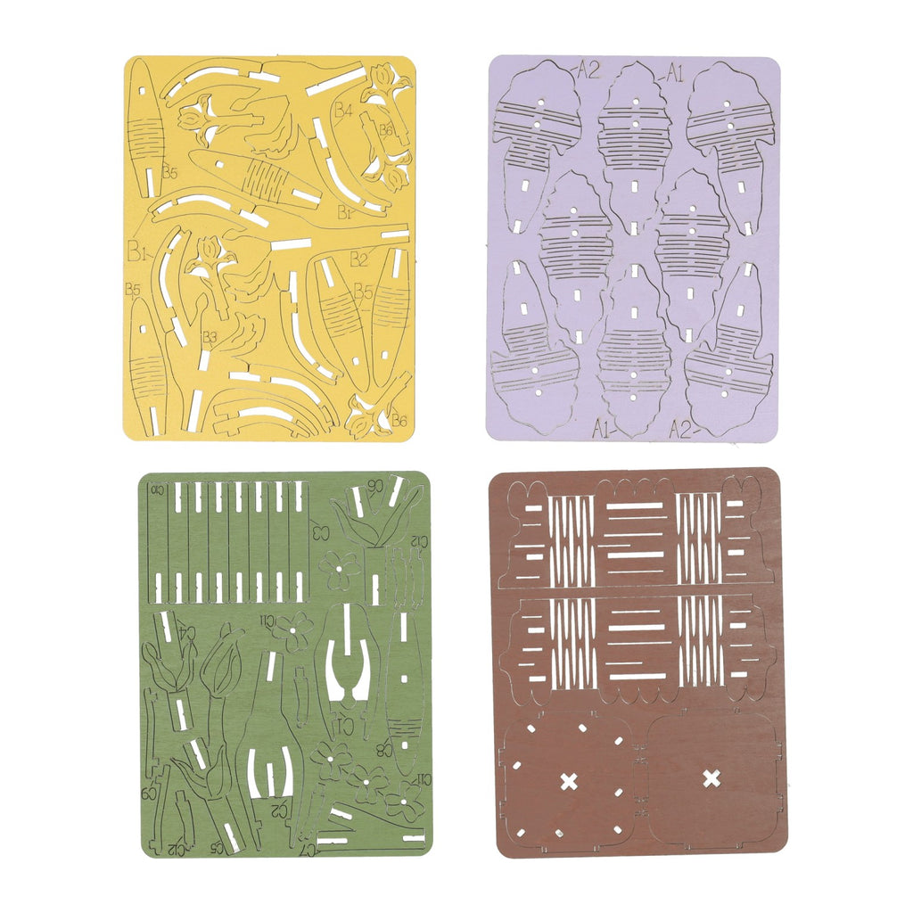 Houten 3D bouwpakket bestaande uit 60 onderdelen voor het maken van een perkje irissen. Gemaakt van hout en geschikt voor kinderen vanaf 8 jaar oud. Leuk als decoratie na het knutselen.