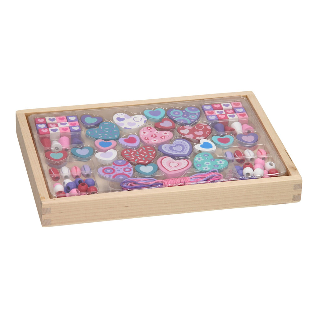 Maak de mooiste armbanden met deze kralenset met houten kralen! Met de mooie pastelkleurige kralen maak je vrolijk gekleurde armbanden en de kralen in de vorm van hartjes maken het helemaal af! Inhoud: 120 stuks kralen en verschillende kleuren touwtjes om de kralen aan te rijgen.