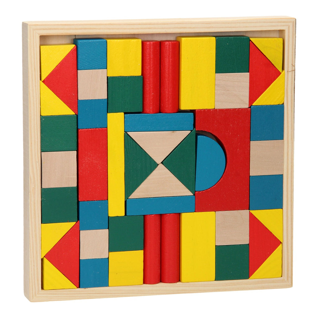 De houten bouwblokken bestaan uit verschillende vormen en kleuren. Met de bouwblokken kunnen kinderen hun fantasie de vrije loop laten gaan. Geschikt vanaf drie jaar. Inclusief een aantal voorbeelden.